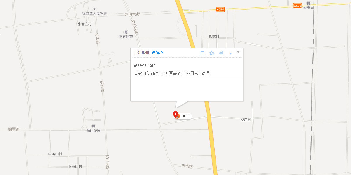 青州市三江機(jī)械有限公司坐落于中國(guó)北部的花木之鄉(xiāng)——山東省青州市,風(fēng)景優(yōu)美,交通便利,人杰地靈。